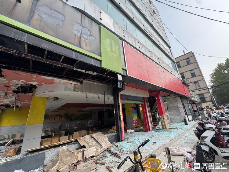 记者在现场看到,天龙大厦西北角原永和豆浆、吉祥馄饨火车站直营店等3家商铺的门窗被卸下,店内已经清空。