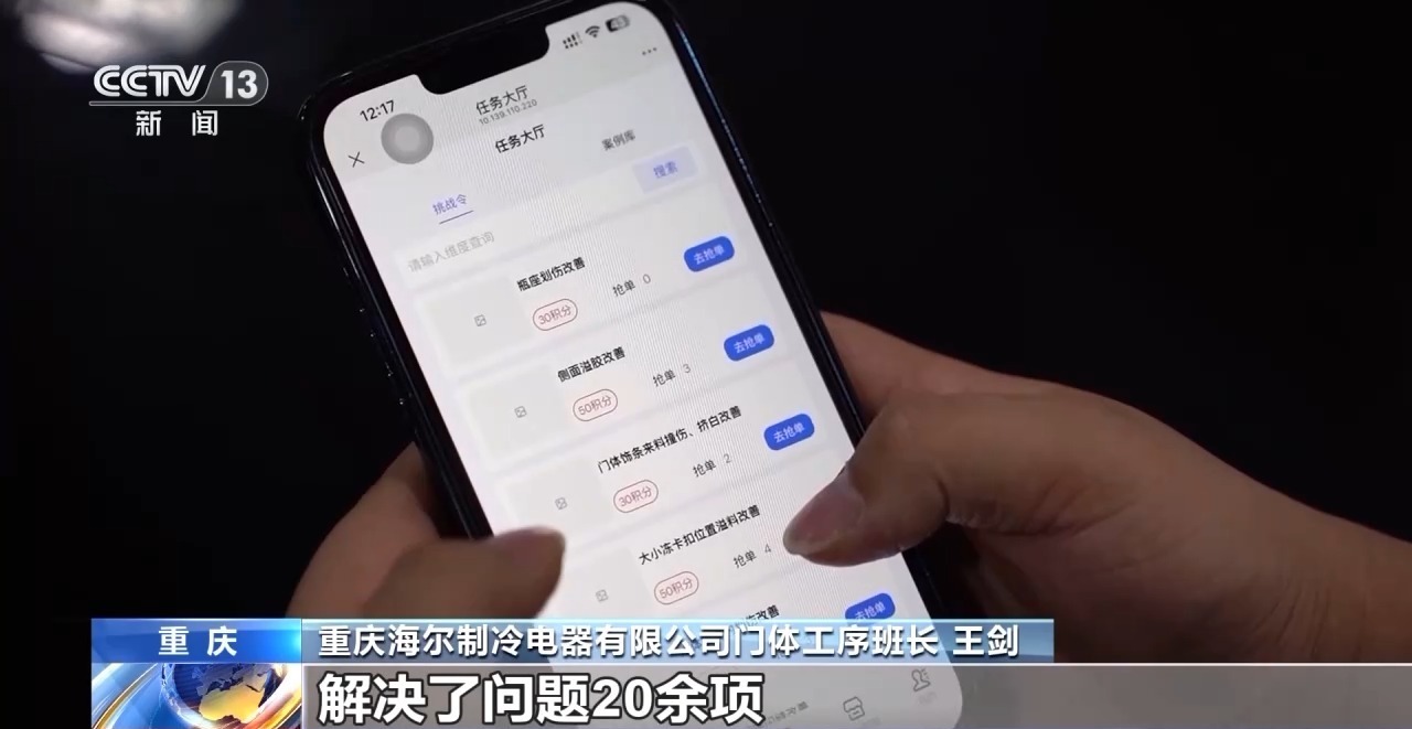 重庆海尔制冷电器有限公司门体工序班长 王剑:就像之前我们有个新平台,刚开始生产的时候有废品率高的问题,我们班组和我一起5个人,我们组队进行抢单,解决了问题20余项,我们感觉非常有成就感,我们也更愿意想办法去钻研去解决问题。